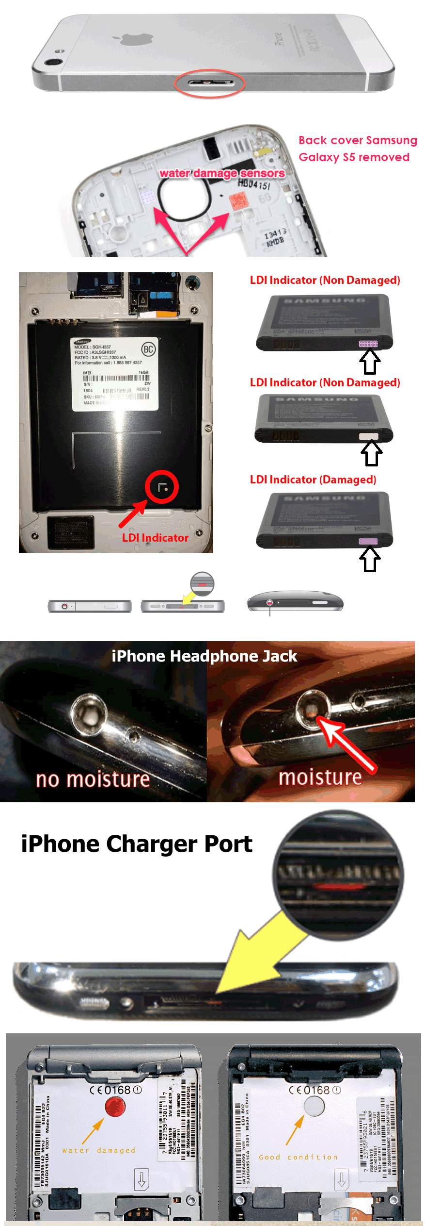 Inside your battery compartment is a small plastic dot that is either solid white or white and red-checkered. If it turns solid red, then your phone has been exposed to moisture
